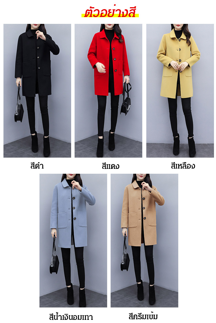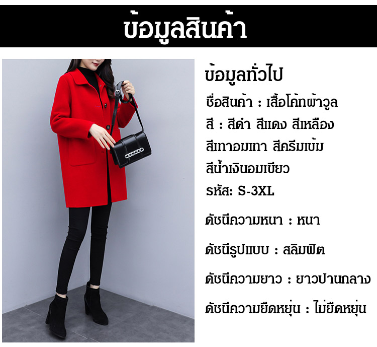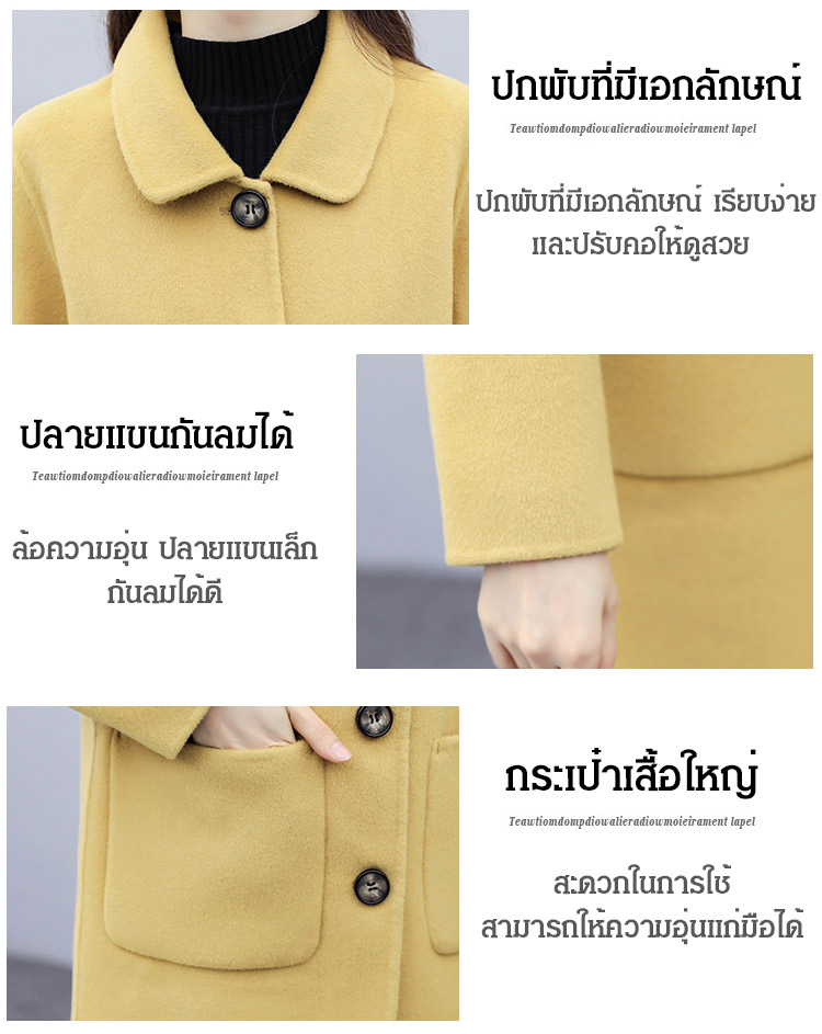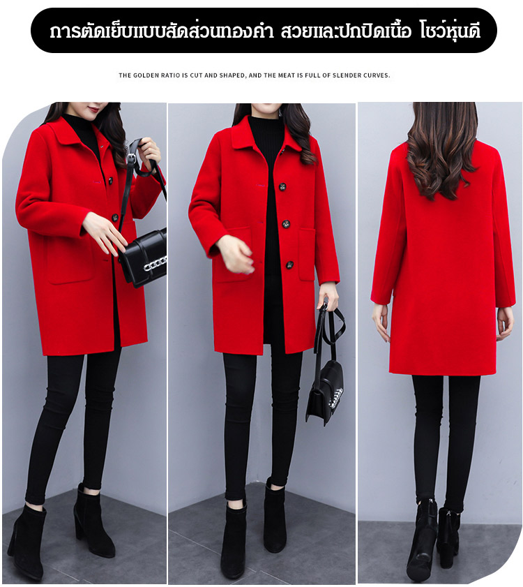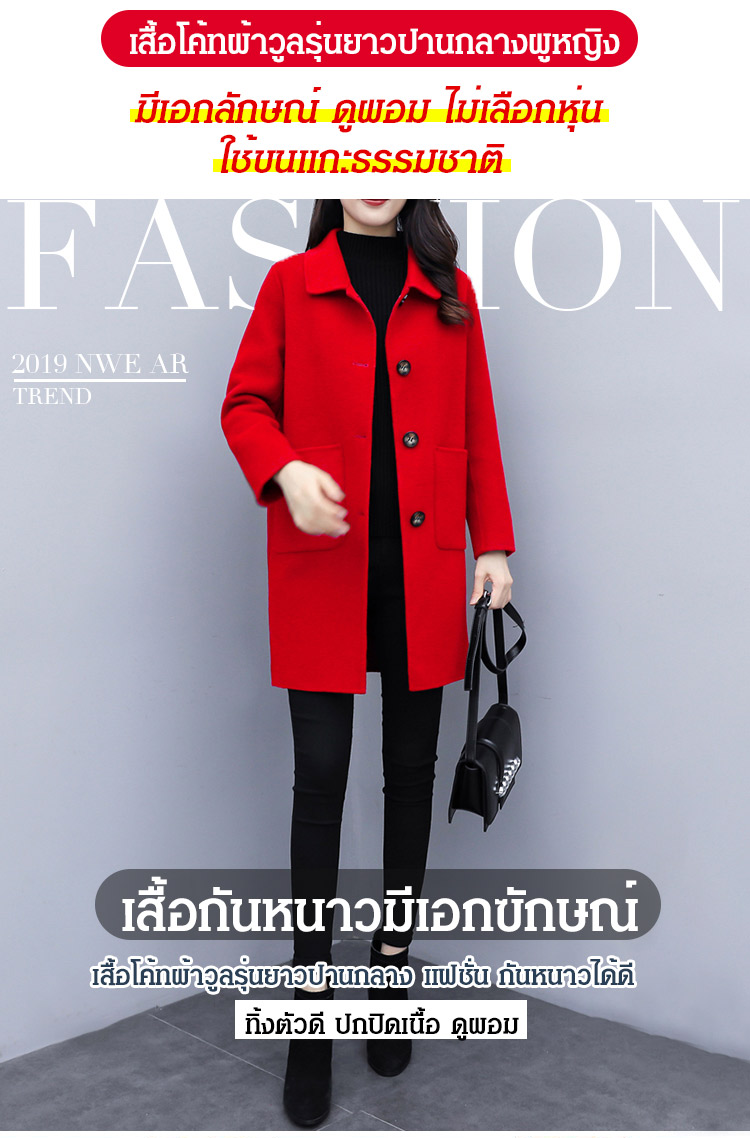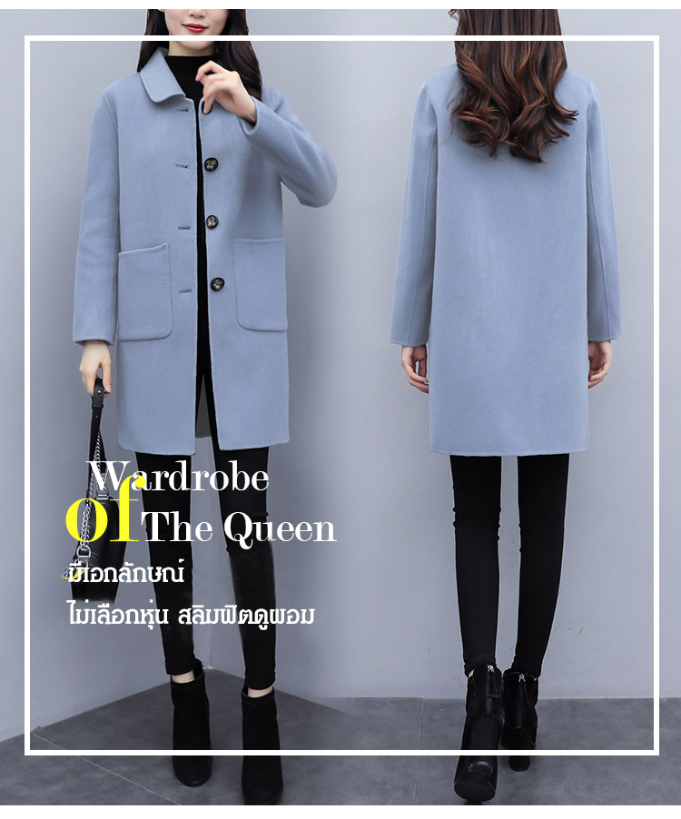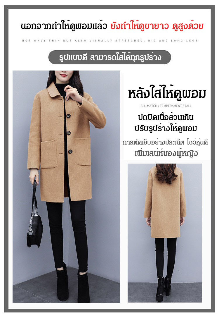 เสื้อโค้ทผ้าวูลรุ่นยาวปานกลางผูหญิง