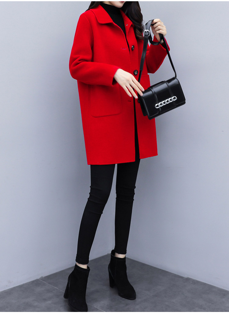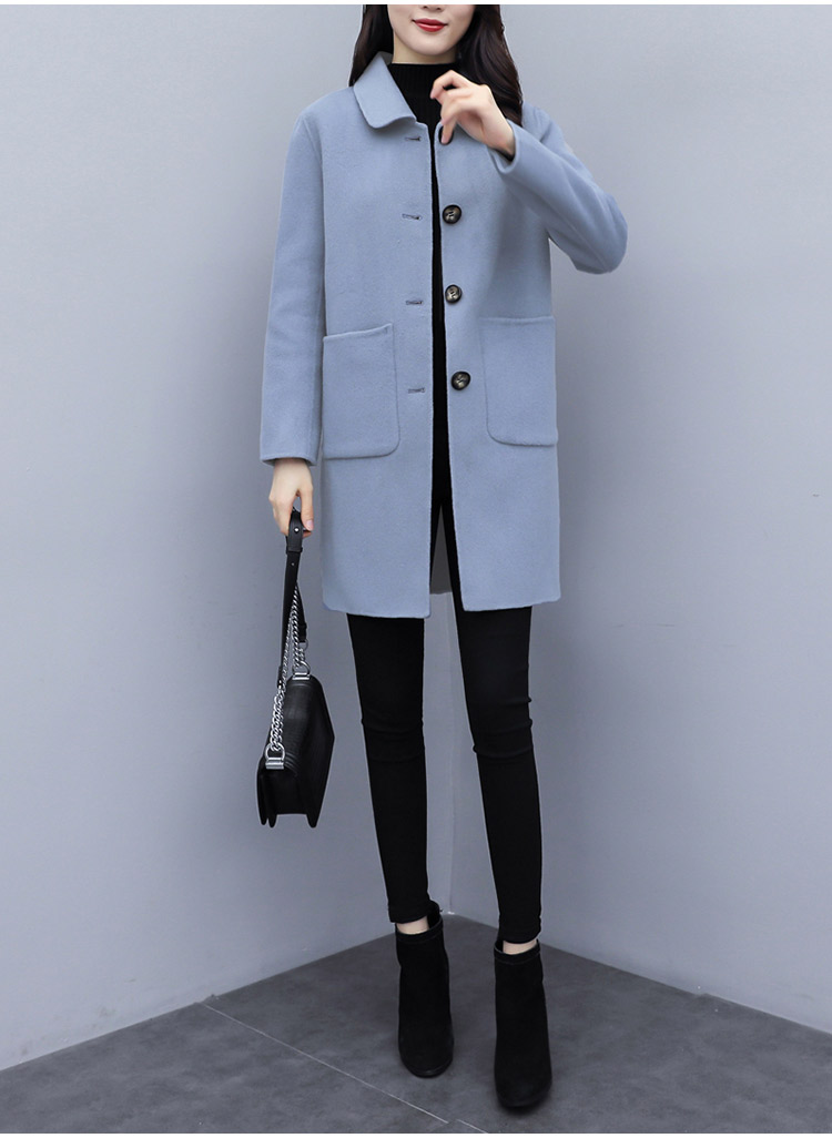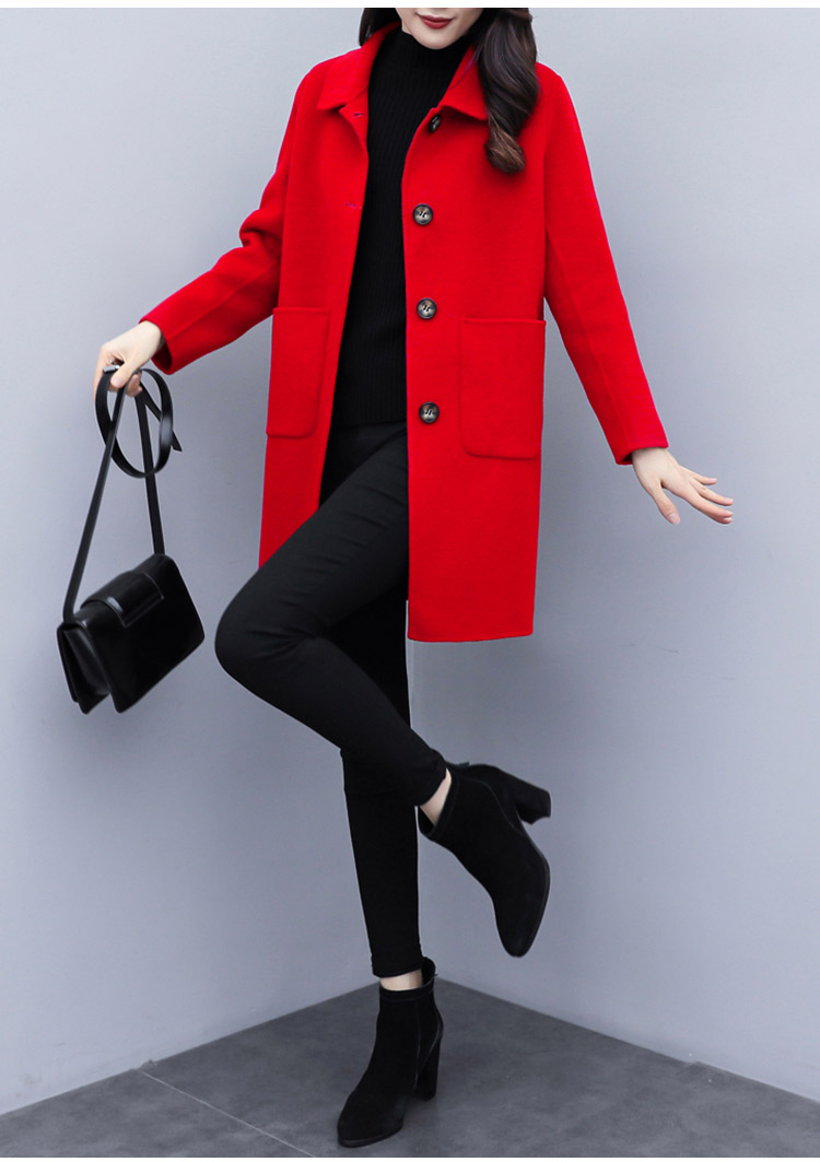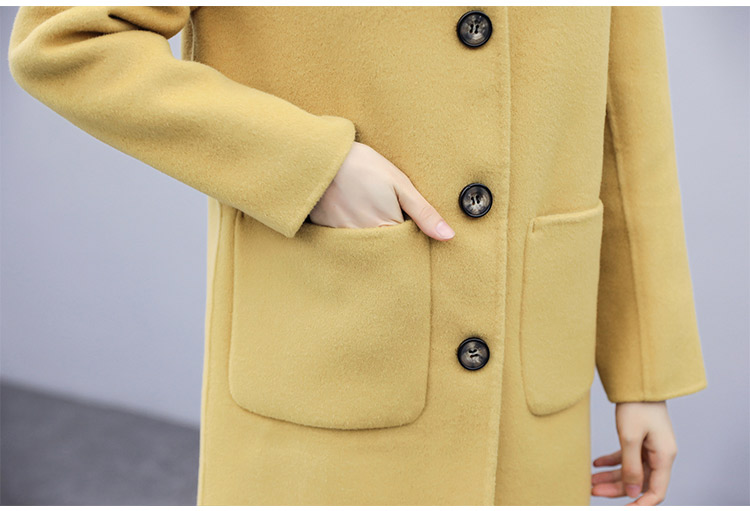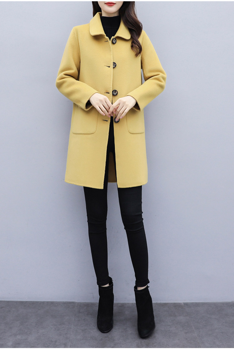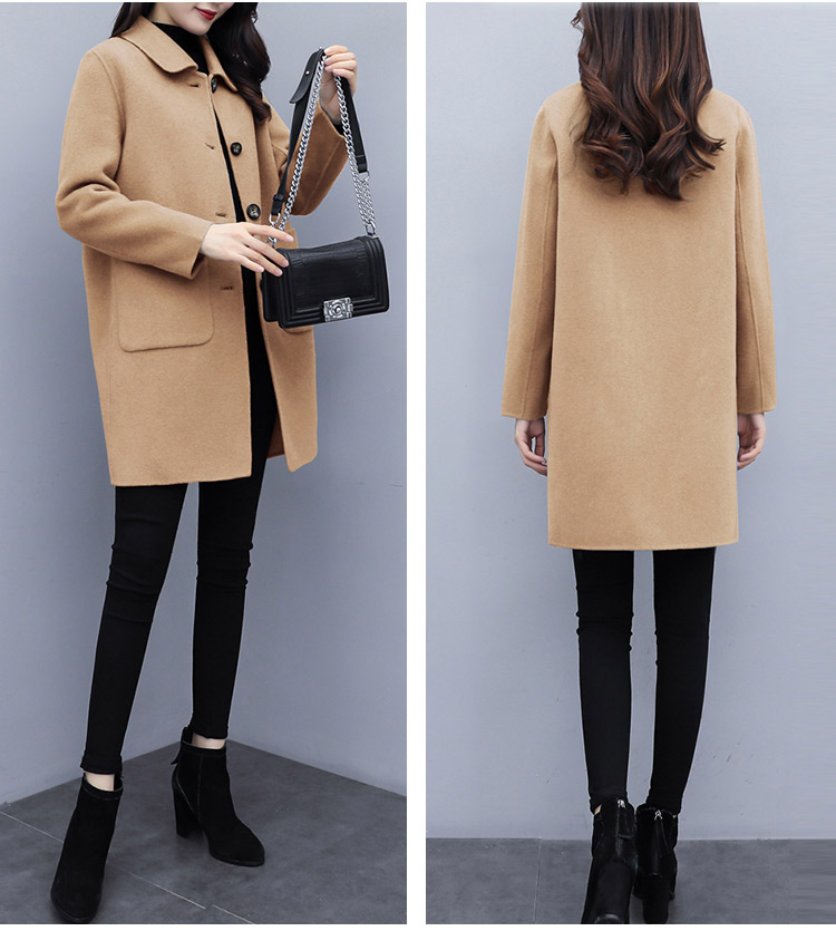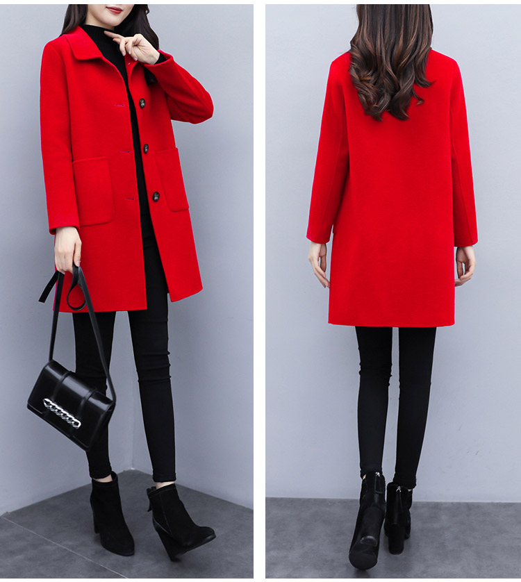 เสื้อโค้ทผ้าวูลรุ่นยาวปานกลางผูหญิง